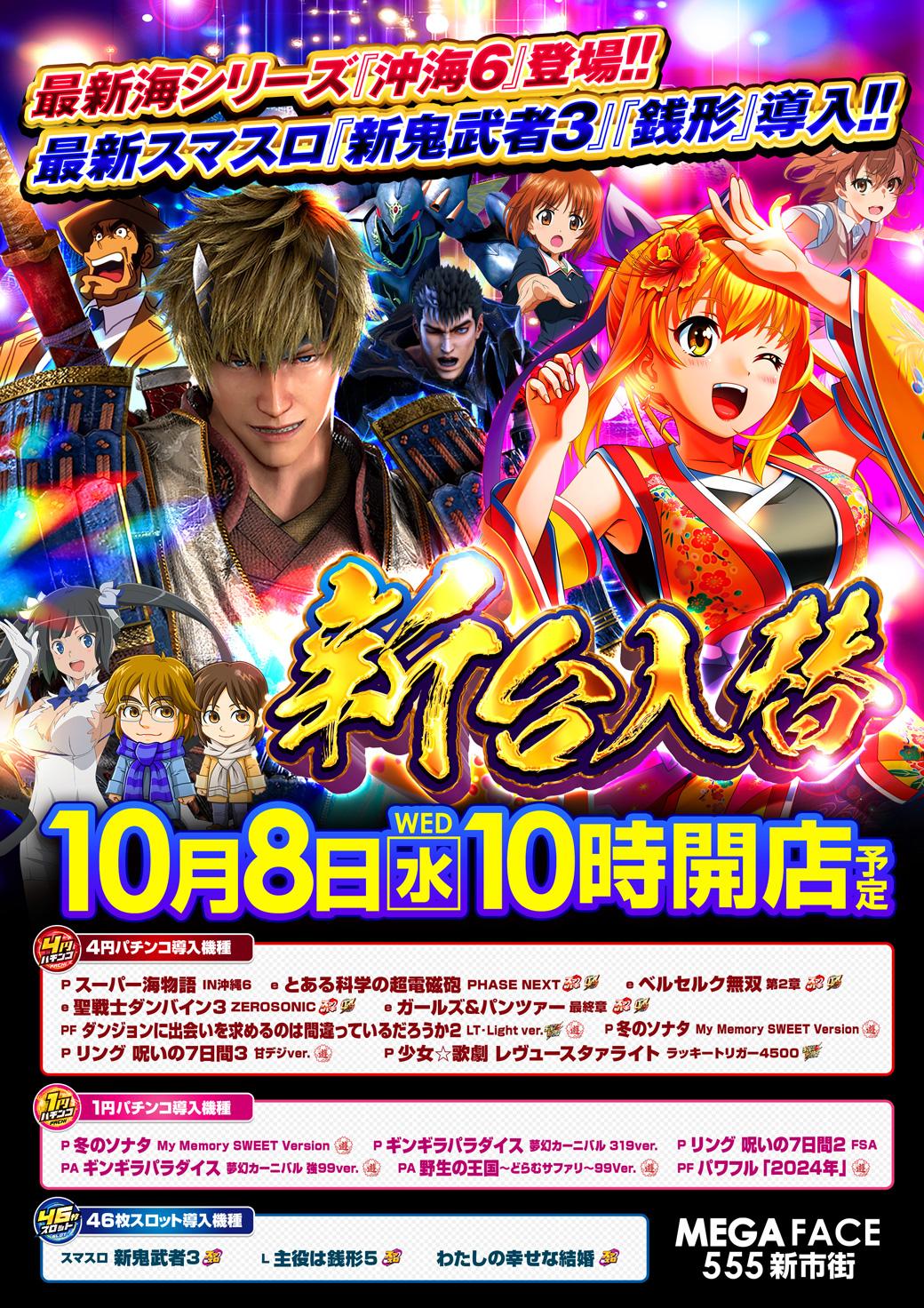 10月8日(水)新台入替【MEGAFACE555新市街】
