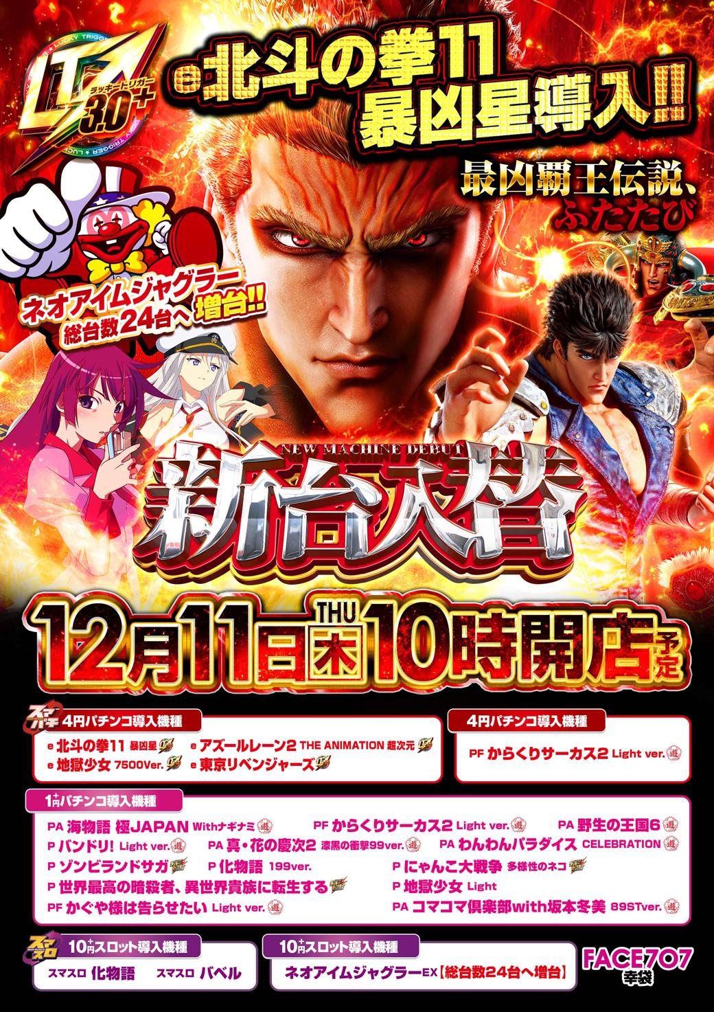 12月11日(木)新台入替【FACE707幸袋】