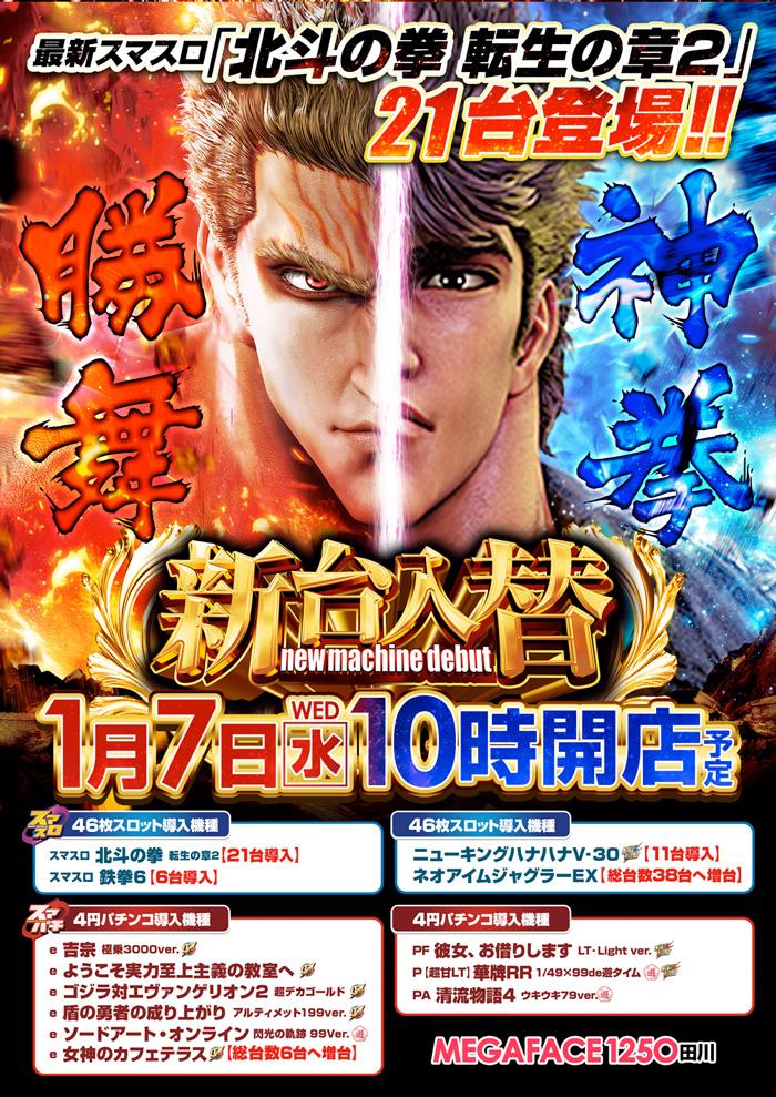 1月7日(水)新台入替【MEGAFACE1250田川】