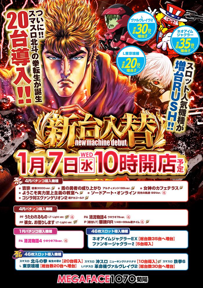1月7日(水)新台入替【MEGAFACE1070菊陽】