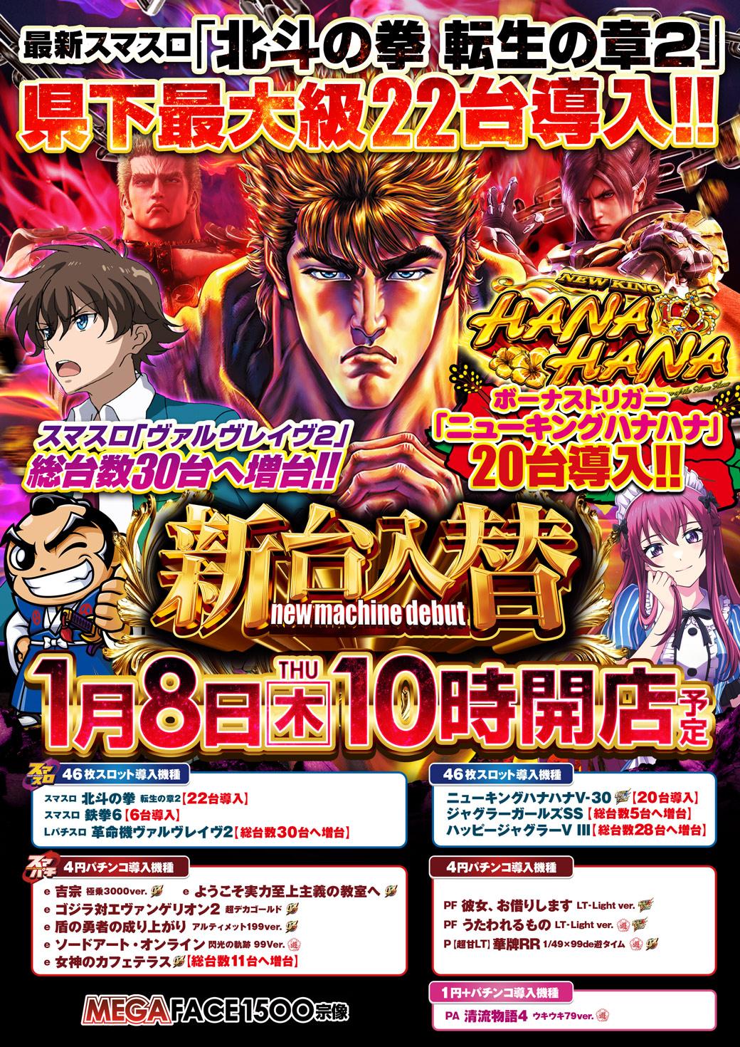 1月8日(木)新台入替【MEGAFACE1500宗像】