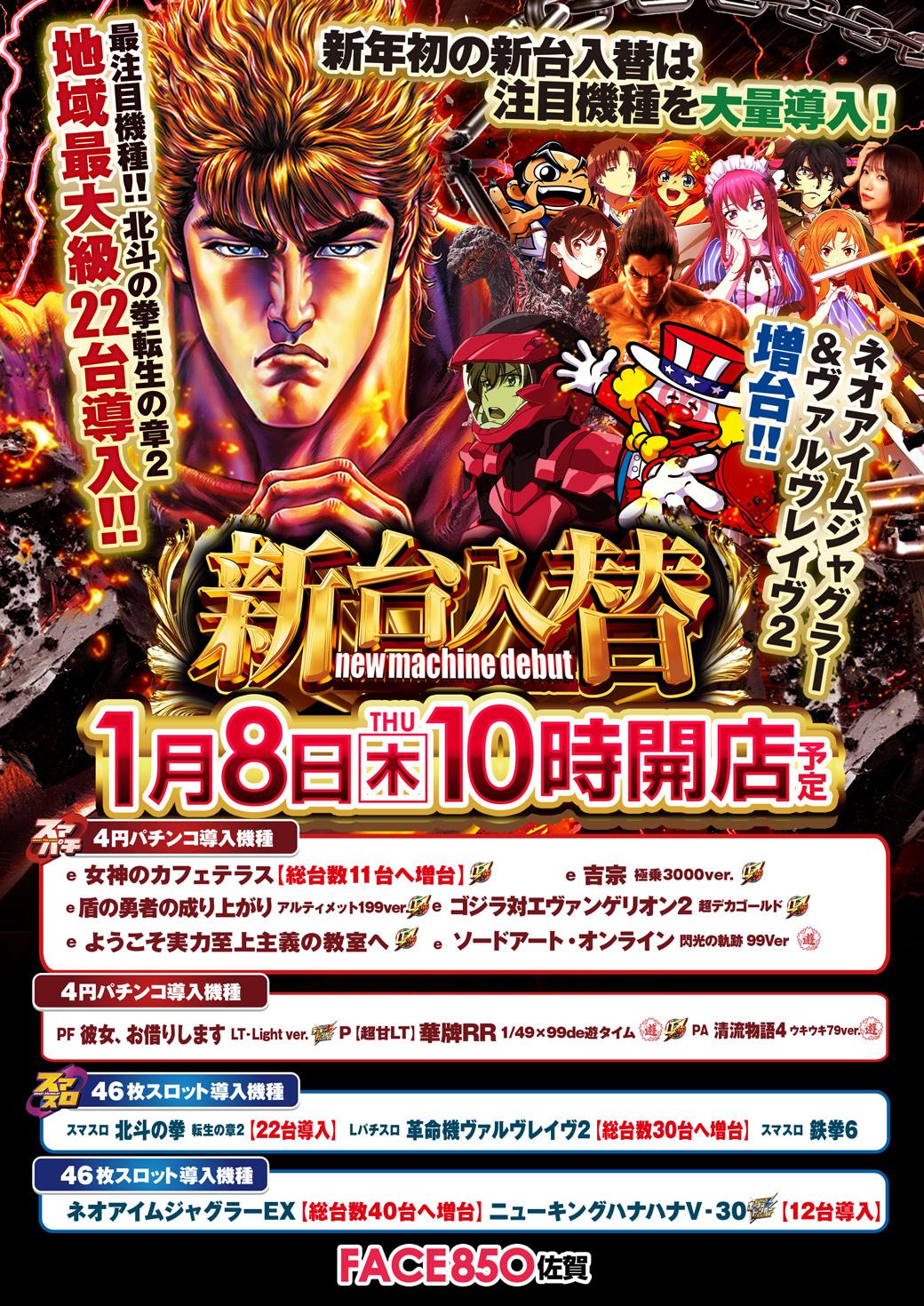 1月8日(木)新台入替【FACE850佐賀】