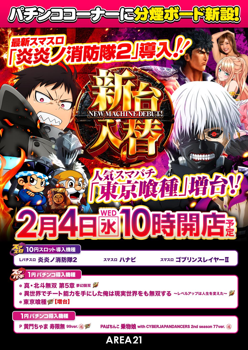 2月4日(水)新台入替【AREA21】