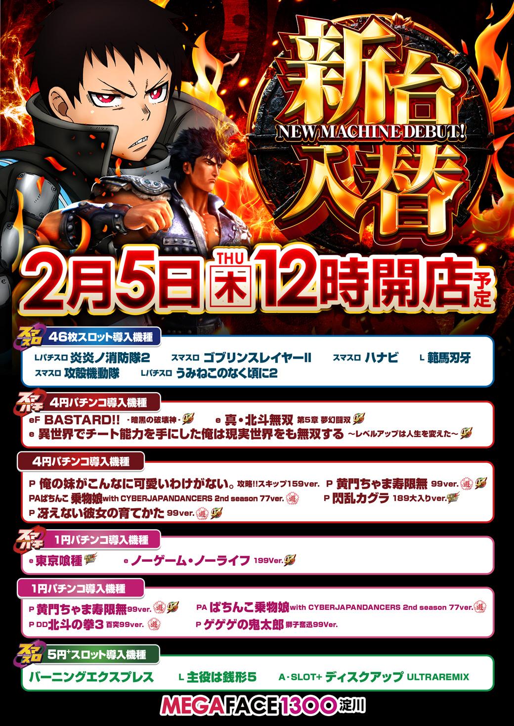2月5日(木)新台入替【MEGAFACE1300淀川】