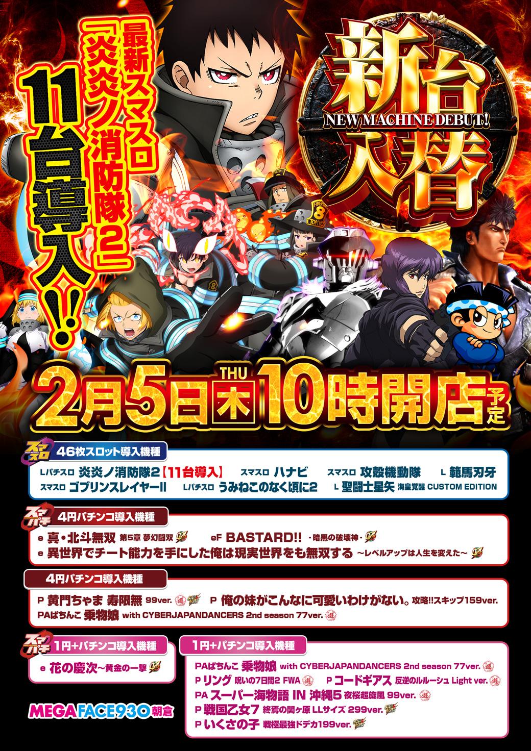 2月5日(木)新台入替【MEGAFACE930朝倉】