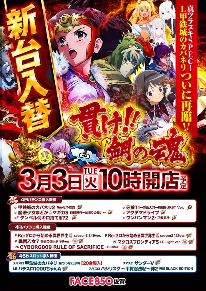 3月3日(火)新台入替【FACE850佐賀】