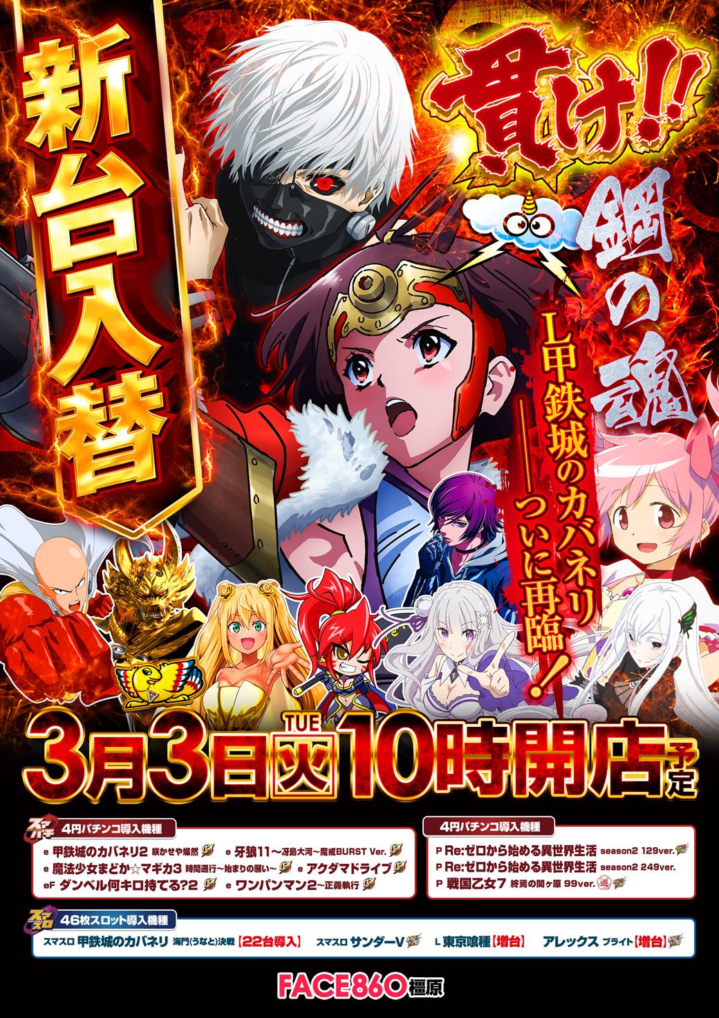 3月3日(火)新台入替【FACE850橿原】