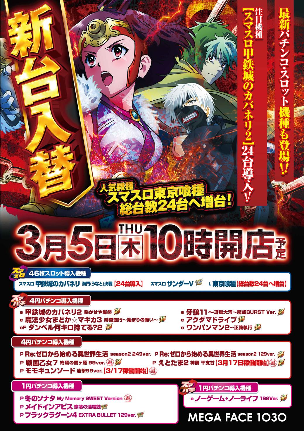 3月5日(木)新台入替【MEGAFACE1030伊都】