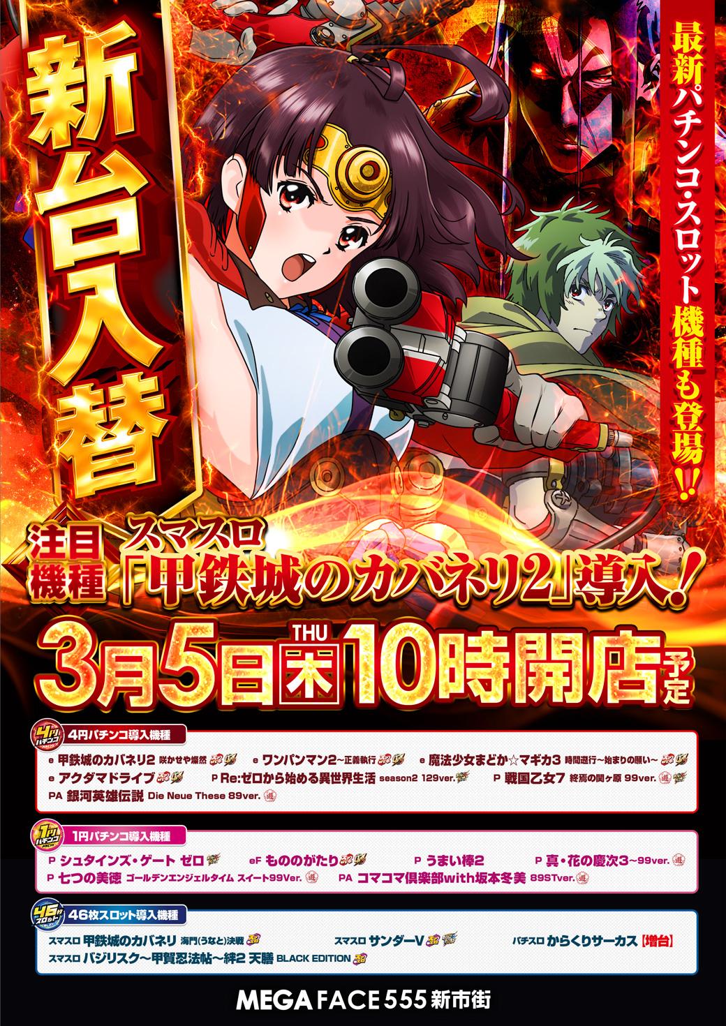 3月5日(木)新台入替【MEGAFACE555新市街】