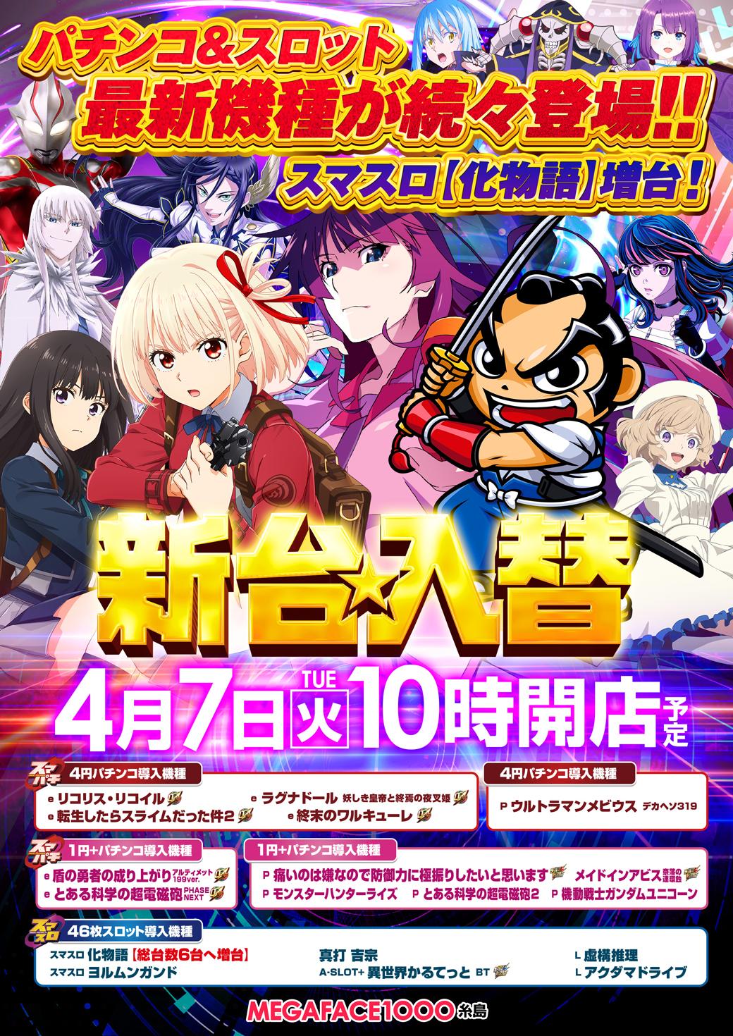 4月7日(火)新台入替【MEGAFACE1000糸島】