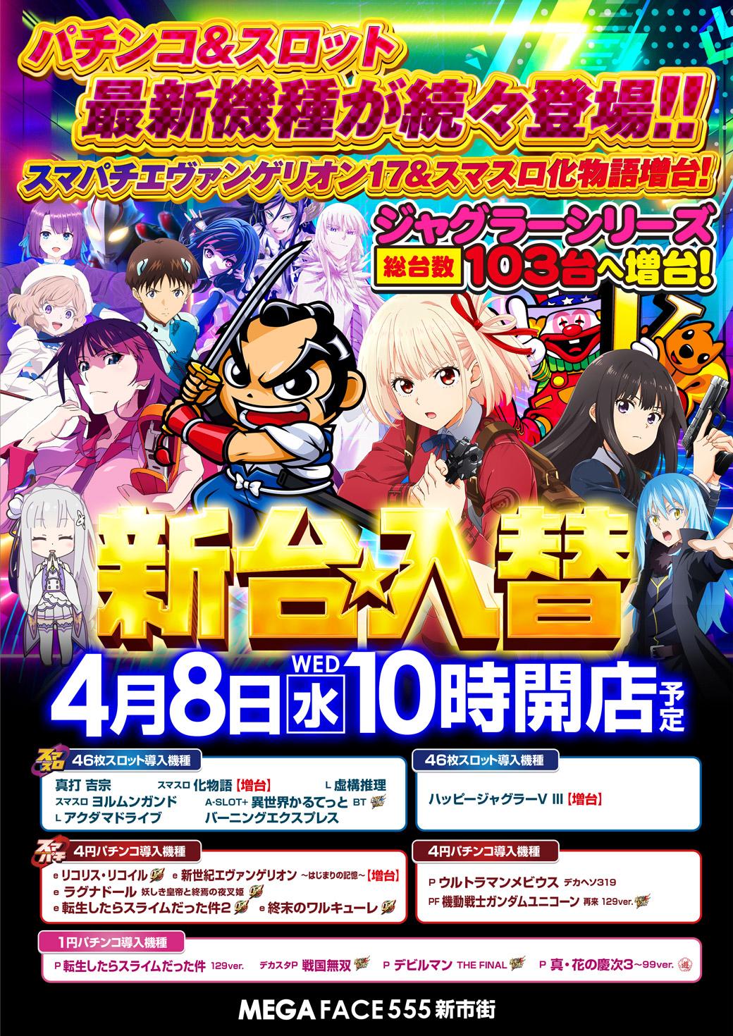 4月8日(水)新台入替【MEGAFACE555新市街】