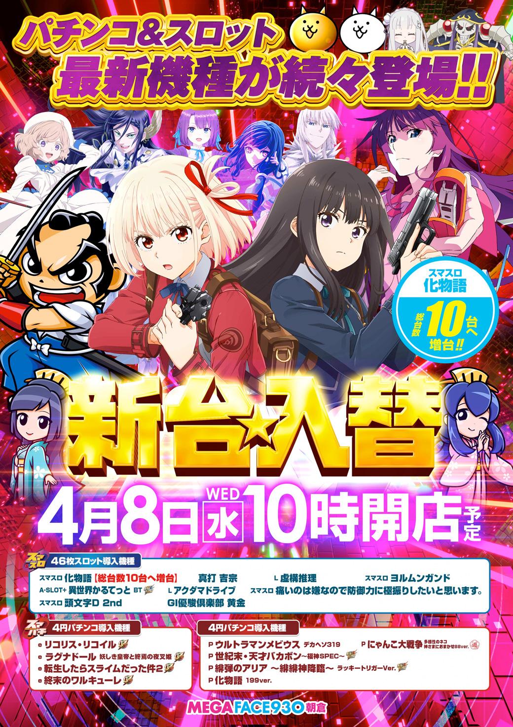 4月8日(水)新台入替【MEGAFACE930朝倉】