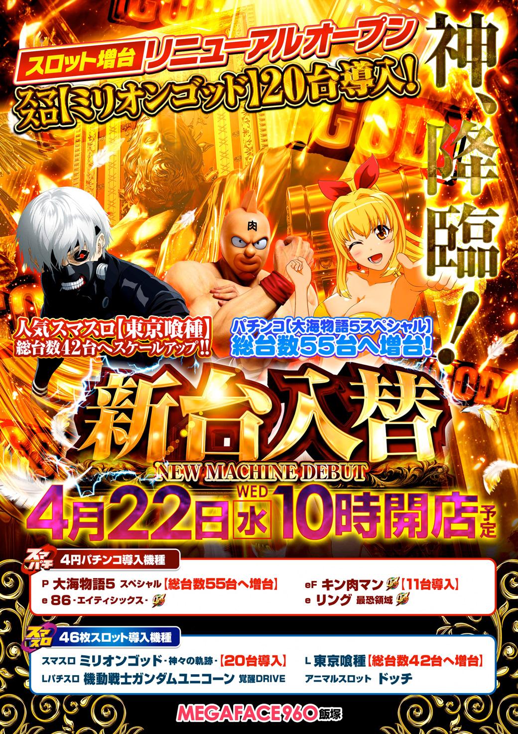 4月22日(水)新台入替【MEGAFACE960飯塚】
