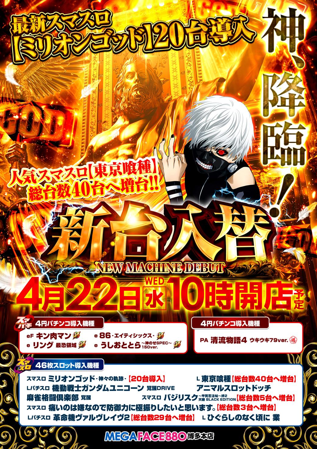 4月22日(水)新台入替【MEGAFACE880博多本店】
