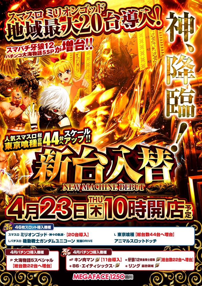 4月23日(木)新台入替【MEGAFACE1250田川】